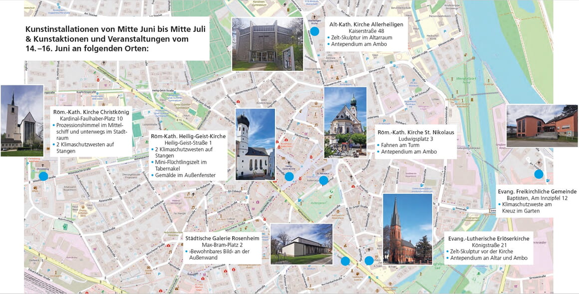 Von 14. bis 16.06.2024 ist der Künstler auf Einladung der Arbeitsgemeinschaft christlicher Kirchen (ACK) in Rosenheim und errichtet in Kirchen und im Stadtraum mit bemalten Lastwagenplanen temporäre Unterschlüpfe als ›bewohnbare Bilder‹ und gestaltet gemeinsam mit den Menschen vor Ort ›Klimaschutzwesten‹. Die Kunstwerke sind bis Mitte Juli zu sehen.